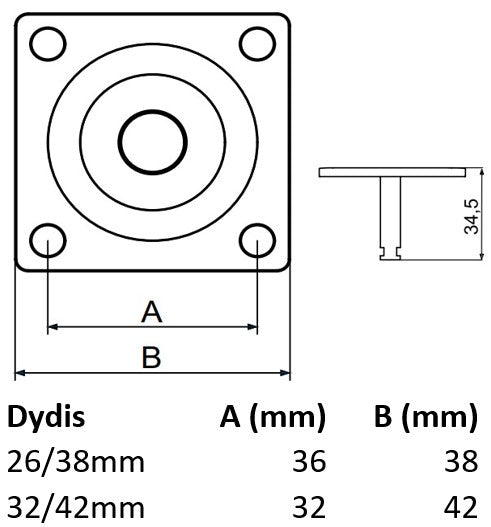 Tvirtinimo plokštelė su ąšimi pasukamam baldiniam ratukui.